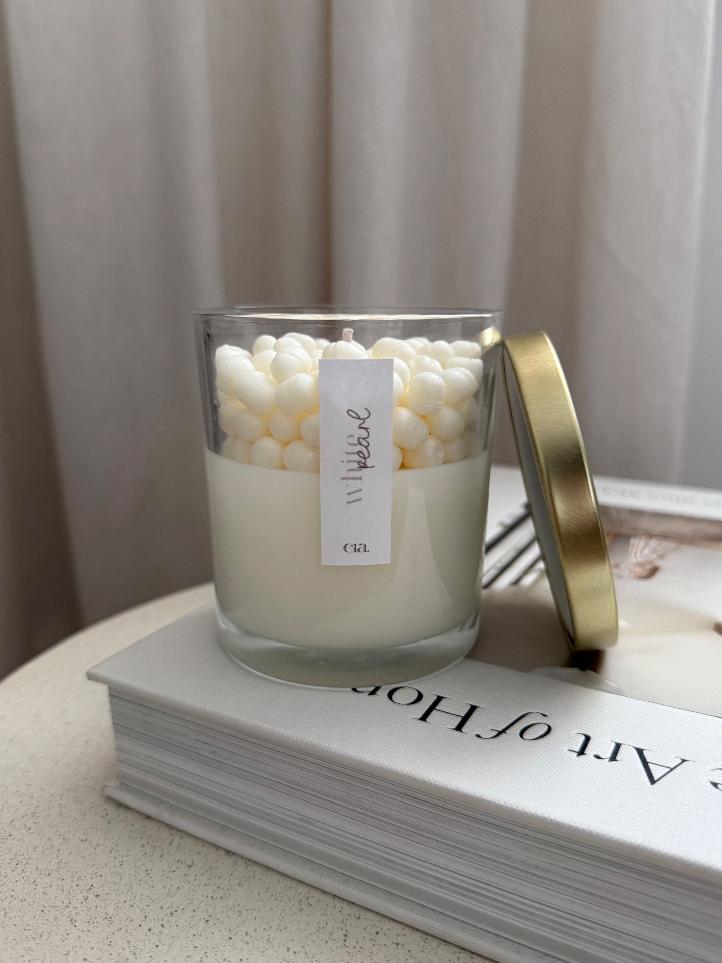 Rozzařte svůj domov perličkovou svíčkou vyrobenou ze sójového vosku. Není to jen svíčka, je to designový kousek, který do vašeho interiéru vnese hřejivý pocit domova a jemnou dekoraci. Sledujte, jak se voskové perličky po zapálení pomalu rozpouštějí a mění v hřejivé jezírko uvolňující jemné aroma vanilky a santalového dřeva Uvedená cena je za 1 ks. Vůně: Používáme kvalitní vonné oleje s certifikací IFRA. Vrchní tóny - vanilka, hřebíček Srdce - vanilka, cedrové dřevo Základ - jantar, pižmo Vosk: 190 | sójový vosk Rozměry: Výška - 9cm Průměr - 7,5cm Svíčka je ve znovu používatelné skleničce se zlatým hliníkovým víčkem Jak se o svíčku starat? Při prvním zapálení nechte svíčku hořet, dokud se vosk neroztaví do okrajů. Tím zabráníte vytvoření tunelu (tunelování). Avšak ji nechte hořet maximálně 3-4 hodiny. Před každým zapálením zkraťte knot o cca 5 mm. K odstranění ohořelého knotu použijte nůžky na knot nebo prsty. Provádějte jen tehdy, když vosk není horký.