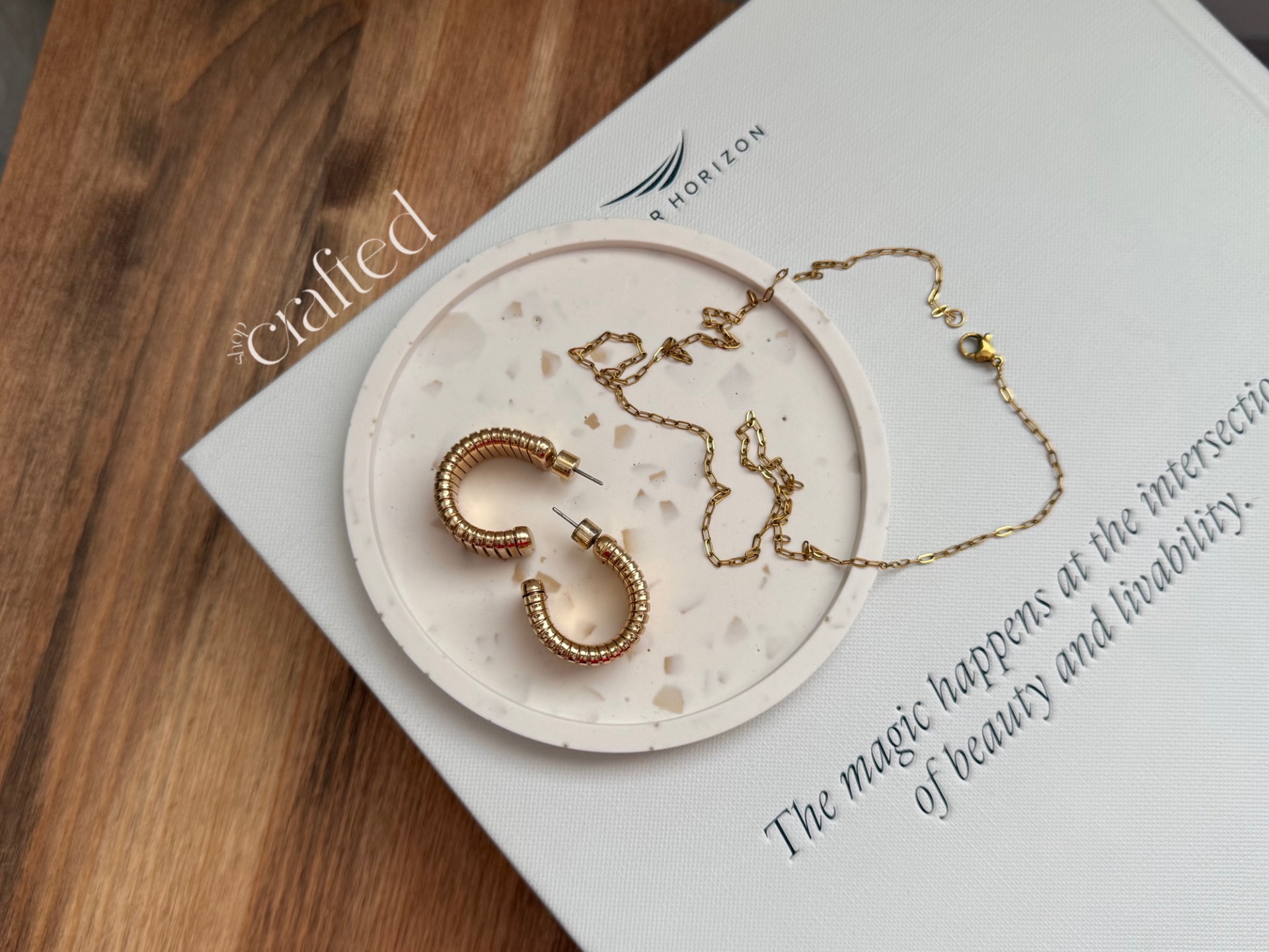 Zútulněte si interiér tímto ručně vyráběným táckem. Můžete ho využít na šperky nebo na pálení našich svíček.