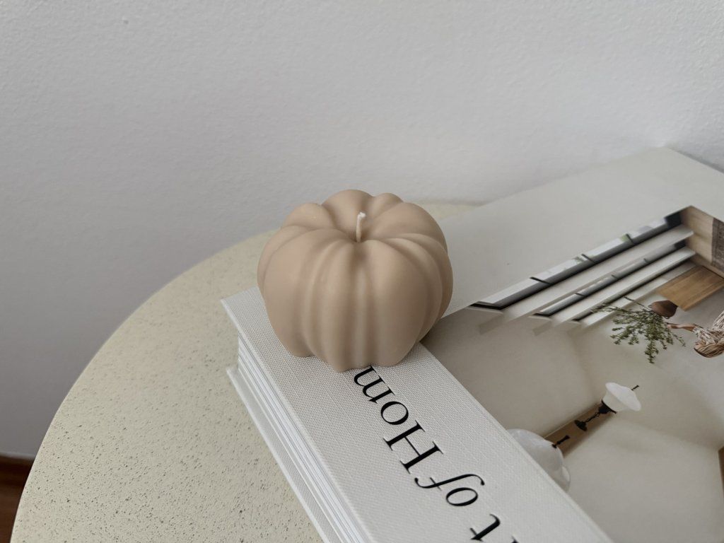 Ručně odlévaná podzimní svíčka ve tvaru dýně z přírodního sójového vosku. Malá, volně stojící dekorace, která vnese do interiéru hřejivou atmosféru podzimu. Svým originálním tvarem potěší nejen při hoření, ale i jako stylová podzimní dekorace.